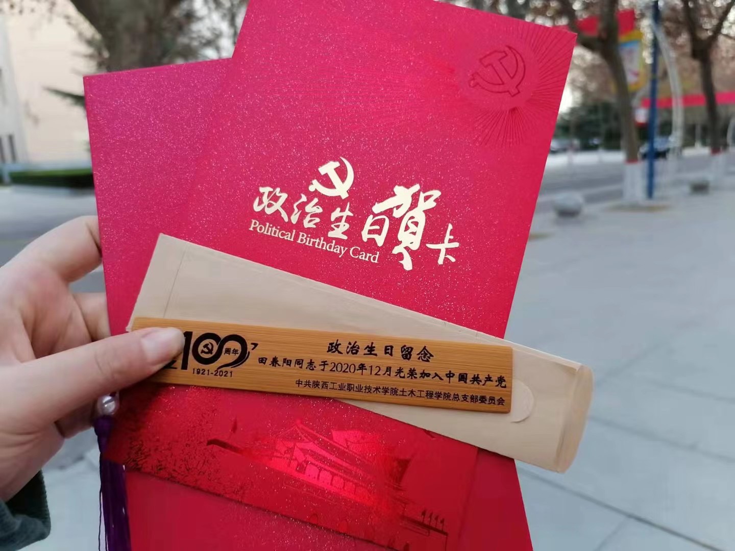 “今天,是您入党1周年纪念日,党组织向你表示热烈的祝贺,希望你在今后的工作中,时刻牢记党的宗旨,永葆共产党员先进性。”学生党员常鸿宽反复端详手里的“政治生日”贺卡,心情久久不能平静。“这是我第一次过政治生日,它提醒着我要不忘入党时的那份初心,认真学习,不断擦亮党员这张宝贵的名片。