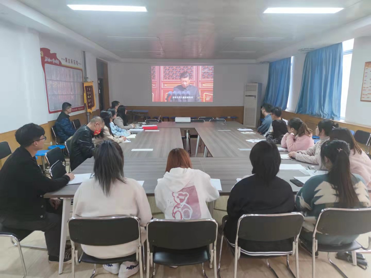 随后,支部书记马俊介绍了爱国的方式方法,同时要求大学生作为未来中国社会的中流砥柱,需以身作则,爱国从我做起,在捍卫共同国家利益的同时,捍卫共同的价值。