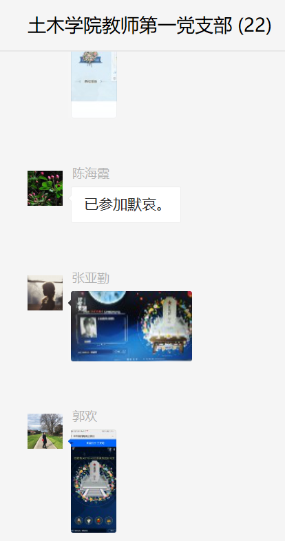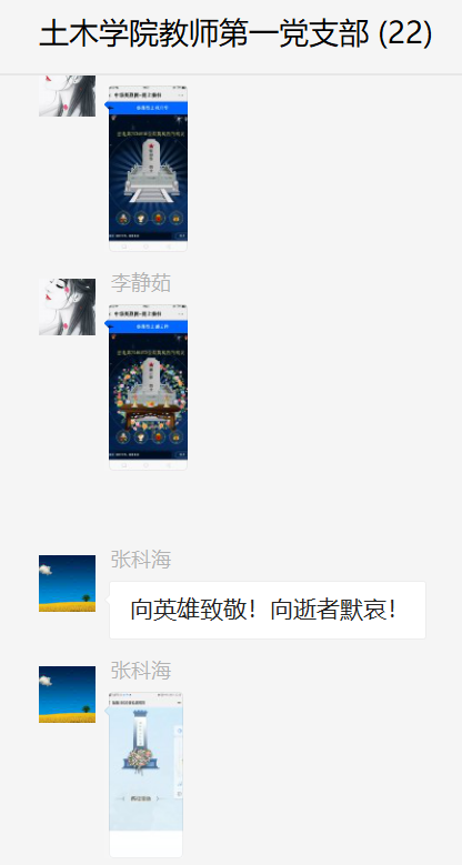 同时为新冠肺炎疫情牺牲的烈士和逝世的同胞哀悼,通过微信群,QQ群等方式表达了自己的所思所想,党员群中大家更是畅所欲言,感慨颇多。