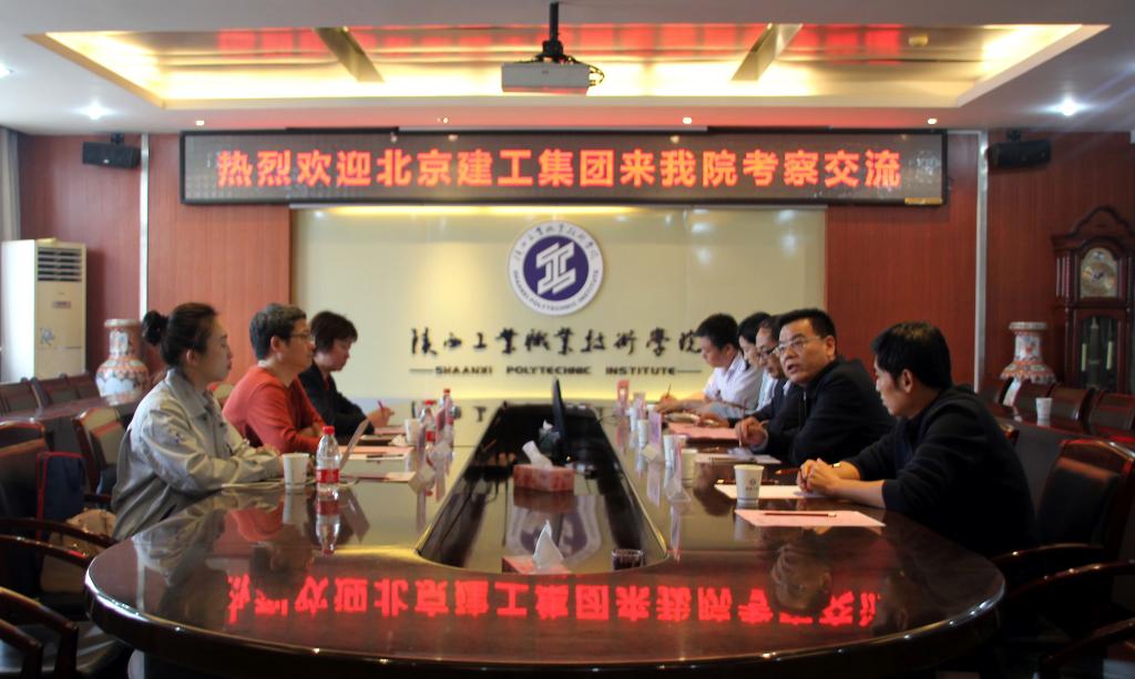 在观看了学院宣传片后,刘永亮副书记对程波浪部长一行表示欢迎,并从职业教育发展历程讲起,介绍了我院的历史沿革、办学特色、师资队伍、校企合作等情况。程波浪部长简要介绍了北京建工集团的基本情况、发展态势和人资需求等。