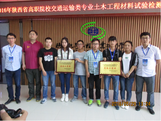 5月29日,2016年陕西省高职院校交通运输类专业土木工程材料试验检测大赛在陕西铁路工程职业技术学院圆满结束,来自全省10个学校的27个队伍参加了比赛,经过了两天的激烈比拼,由我院教师王邵琨带队,王恩波、鞠森森指导的建筑工程管理1401班幕涛、工程造价1413班范琳毓2名同学荣获团体二等奖。道桥1501班李新、程王奇2名同学荣获团体三等奖。