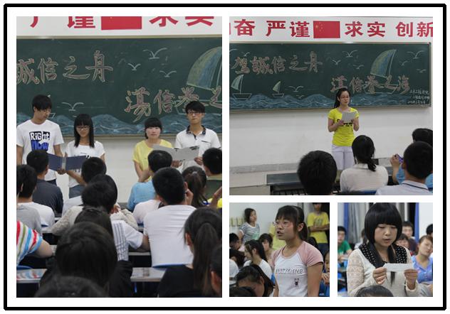 为了让资助诚信感恩教育活动更加深入的开展,让诚信感恩教育走进班级,5月31日我院在各班级开展了形式多样的主题班会活动,演讲、小品、即兴心得体会、感言,同学们积极参与,畅所欲言,用行动和语言诠释诚信和感恩。工程造价1209、1210班开展了“驾诚信之舟、荡信誉之海,在感恩中扬帆起航”的主题班会活动。土木学院领导亲临现场,师生们一起交流诚实守信,知恩图报的现实意义。同学们自编自演的融“受助、诚信、感恩”于一体、取材于大学生生活的“还贷”小品,将班会推向了高潮,很多同学深受感动。现场掌声阵阵,喝彩不断。最后全体人员进行了诚信感恩集体宣言。通过本次主题班会活动,同学们纷纷表示深受教育,一定要将诚信感恩落实在行动中,上好一堂课,一次自习,努力学习,掌握技能,遵守校纪校规,做“三风”建设的领航人,按时还贷,履行自己的职责,回报社会。