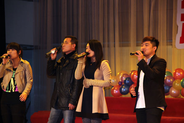 联欢会上师生同台献艺。《江南style》、《另类阳光》、《三句半》、《车站》、《激情飞扬》等同学们的精彩原创演出博得了全场观众的阵阵喝彩;王涛、郭欢、夏伟、侯经文以及尚昆等老师的倾情表演将联欢会推向了一个又一个的高潮,现场气氛异常热烈。