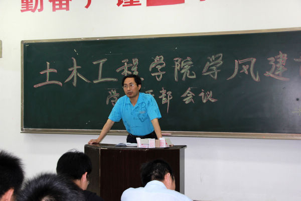2012年5月28日下午,我院在崇文东楼206召开了“土木工程学院学风建设学生干部会议”。参会人员有土木工程学院院长贺天柱,党总支书记何克祥,学工办主任程建卫,学生会全体干部以及各班班长、团支书、学习委员。会议由学工办主任程建卫主持。
