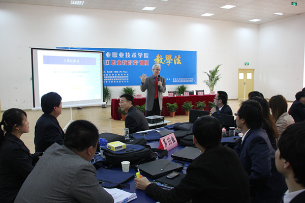 4月12日上午,土木工程学院选派11名教师参加了德国职教专家胡格教授在我院教职工活动中心乒乓球馆举办的“教学法培训班”。胡格教授是德国职教专家、巴符州教师继续教育学院高级培训师、巴符州郝搏职业学院机电专业主任、未来学习教育出版社社长。该培训班将从4月12日开班,4月15日结束,历时4天。在4天的培训时间里,胡格教授主要从德国职业教育的精髓、先进的教学方法和职业教育等方面向大家介绍德国在职业教育方面的实践经验,希望各位老师能通过几天的学习,感悟德国职业教育,创新教育教学方法,探讨职业教育发展规律,推进职业教育发展。
