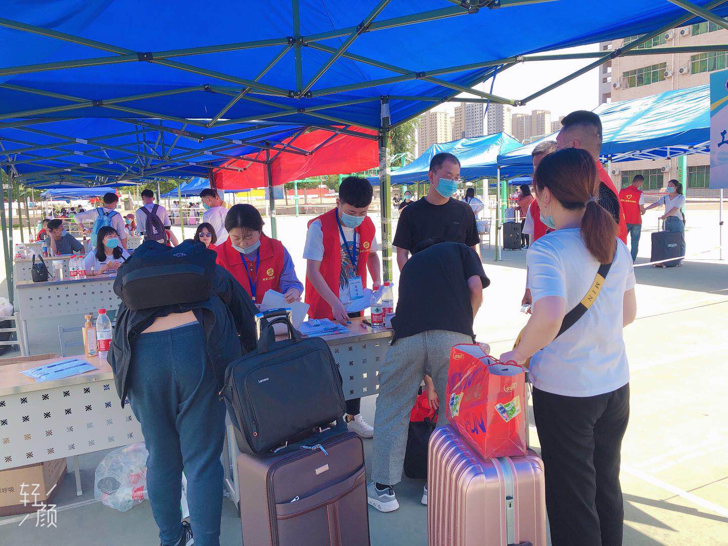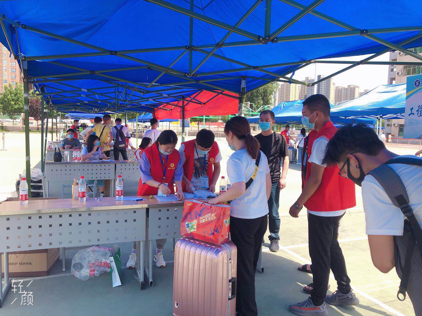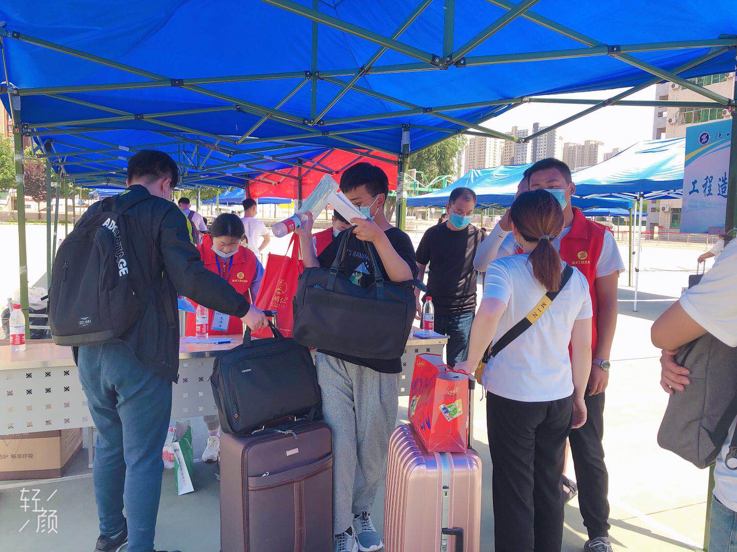 5月16日当天,土木学工办辅导员和部分学生干部早早于篮球场等候返校学生,返校学生按照学校安排有序进入校园,进行新学期报道工作,