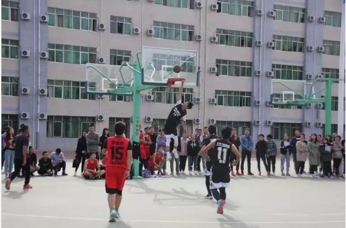 随着裁判的哨响,整个球场就充满了紧张的气氛,球员的激情全都淋漓尽致的体此刻篮球场上。比赛进程中,各位队员都全力以赴,用心防守、越战越勇,显示了他们极佳的体育精神。在场同学也情绪高涨、摇旗呐喊,不时为队员打气、喝彩,气氛热烈。赛场上的,双方拼抢很激烈,带球、运球、投篮等一系列动作潇洒、规范,引来围观同学一阵阵地喝彩。