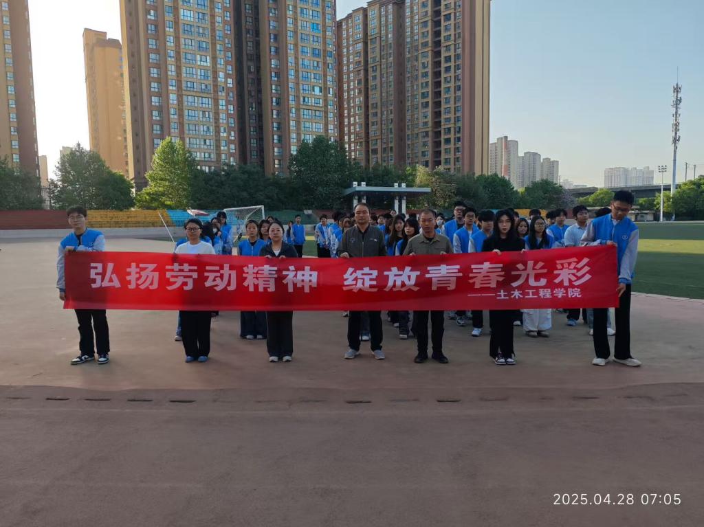 4月28日清晨,土木工程学院在学校田径场开展“弘扬劳动精神,绽放青春光彩”国旗下的成长主题教育活动。土木工程学院党总支书记卢文澈、学工办主任马俊、土木工程学院辅导员及2024级部分学生代表参与了此次活动,共同在庄严的国旗下感受劳动精神的时代内涵。